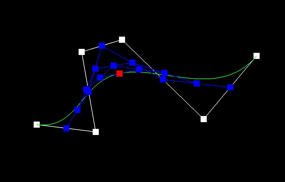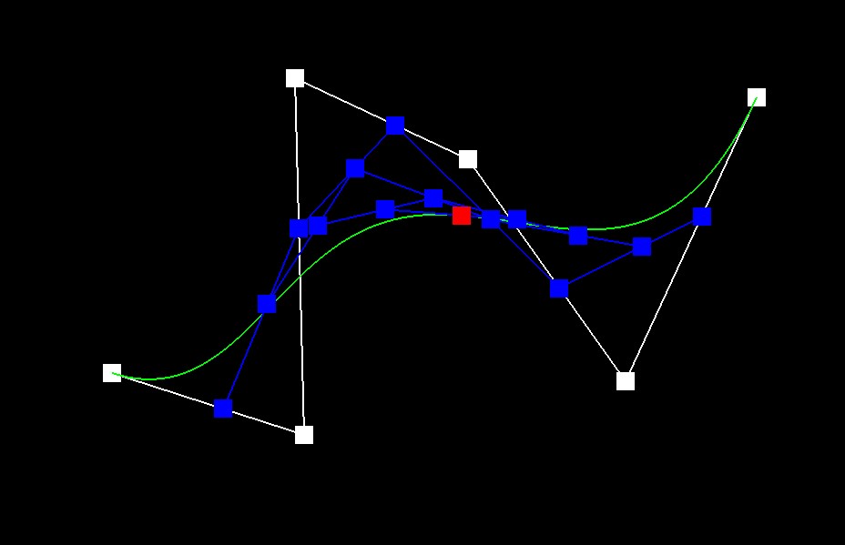to adjacent points to generate new sets of points until only a single point remains. That final point is the point on the Bezier curve at the parameter \(t\). For implementation