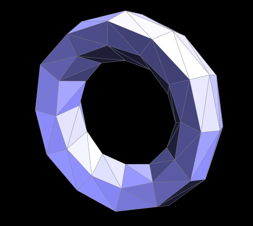 Finally, to regularize the mesh topology, I iterated over the new edges and flipped any edge that connected an original vertex to a new vertex. This flip